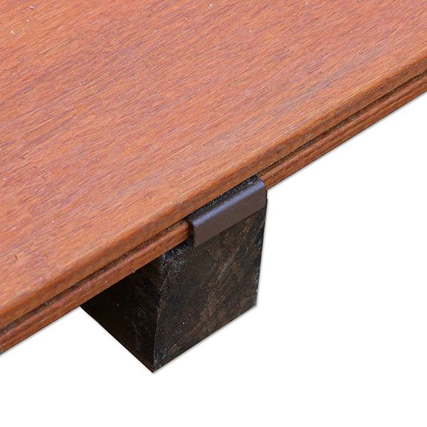 Fabriqués en acier inoxydable, ces clips offrent une excellente résistance à la corrosion et aux contraintes extérieures. Leur finition brun foncé s’intègre discrètement aux teintes naturelles du bambou, évitant toute rupture visuelle en périphérie de la terrasse.