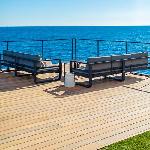 Conçue pour un usage extérieur intensif, elle est particulièrement adaptée aux terrasses et aux abords de piscine. Sa surface sans échardes permet une utilisation confortable pieds nus. Elle résiste également aux agents de piscine et au chlore.