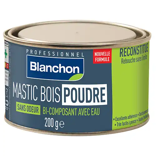Mastic bois poudre Bois clair 200g - Le Mastic bois poudre Bois clair 200g est la solution idéale pour réparer les imperfections mineures sur vos boiseries claires. Ce mastic en poudre, facile à préparer et à appliquer, offre une adhésion forte et une finition qui peut être poncée et peinte pour s'harmoniser parfaitement avec le bois environnant. Sa teinte bois clair convient particulièrement aux essences de bois naturellement claires, assurant une réparation discrète et esthétique. La contenance de 200g est suffisante pour couvrir de multiples petites réparations, rendant ce produit parfait pour les bricoleurs et les professionnels à la recherche d'une solution efficace et durable pour la restauration du bois.
