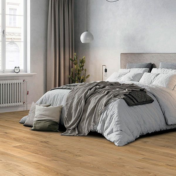 Cette planche large (chanfreins 4V) met en valeur un chêne clair au tri « Sauvage », avec un brossage qui souligne le veinage. La finition naturaDur apporte l'aspect naturel d'un bois huilé… avec la résistance et l'entretien simplifié d'une vitrification haut de gamme. Résultat : un parquet authentique, durable et facile à vivre.