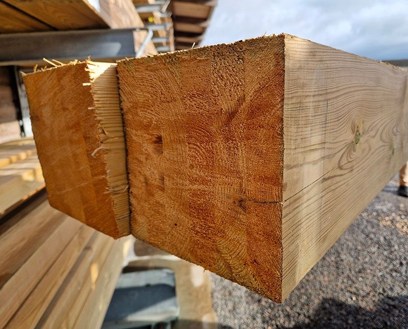 Poteau Contre Collé Pin R4F Traité CL3 vert 195x195mm De 3000 mm à 6000 mm